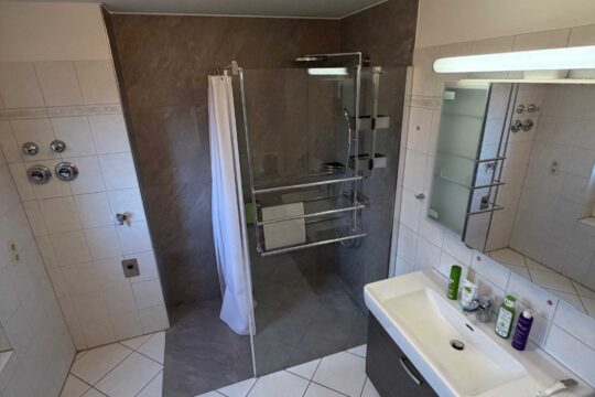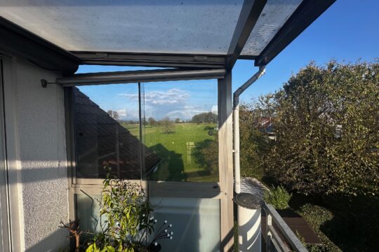 Zur Wohnung gehören sowohl für das Auto ein Stellplatz in der Tiefgarage wie ein Außenstellplatz dazu.Hinzu der Kamin, der überdachte Balkon mit Sonnenschutz und Windschutz, diverse Insektenschutzgitter an den Fenster. Ein rundes Paket!