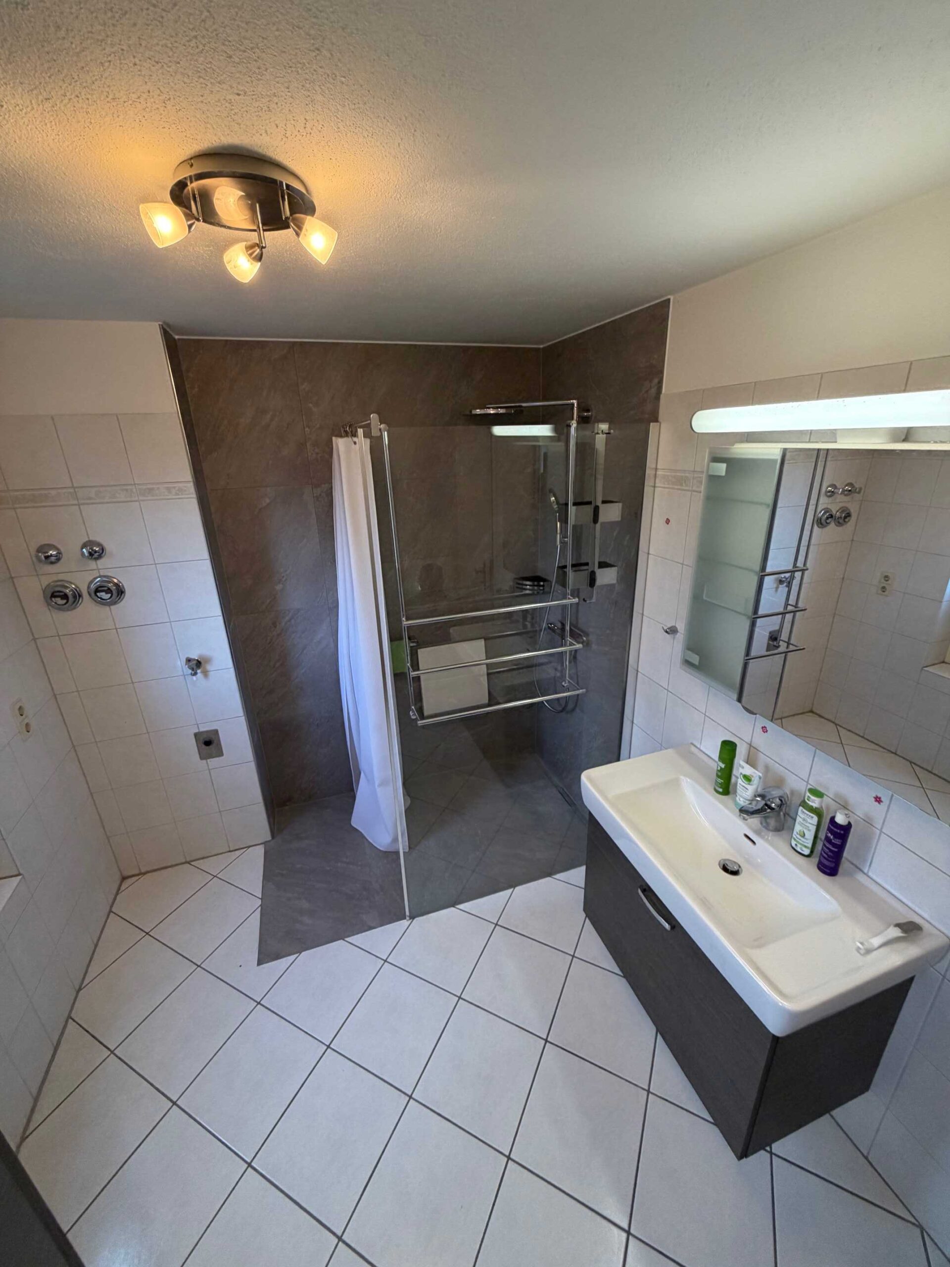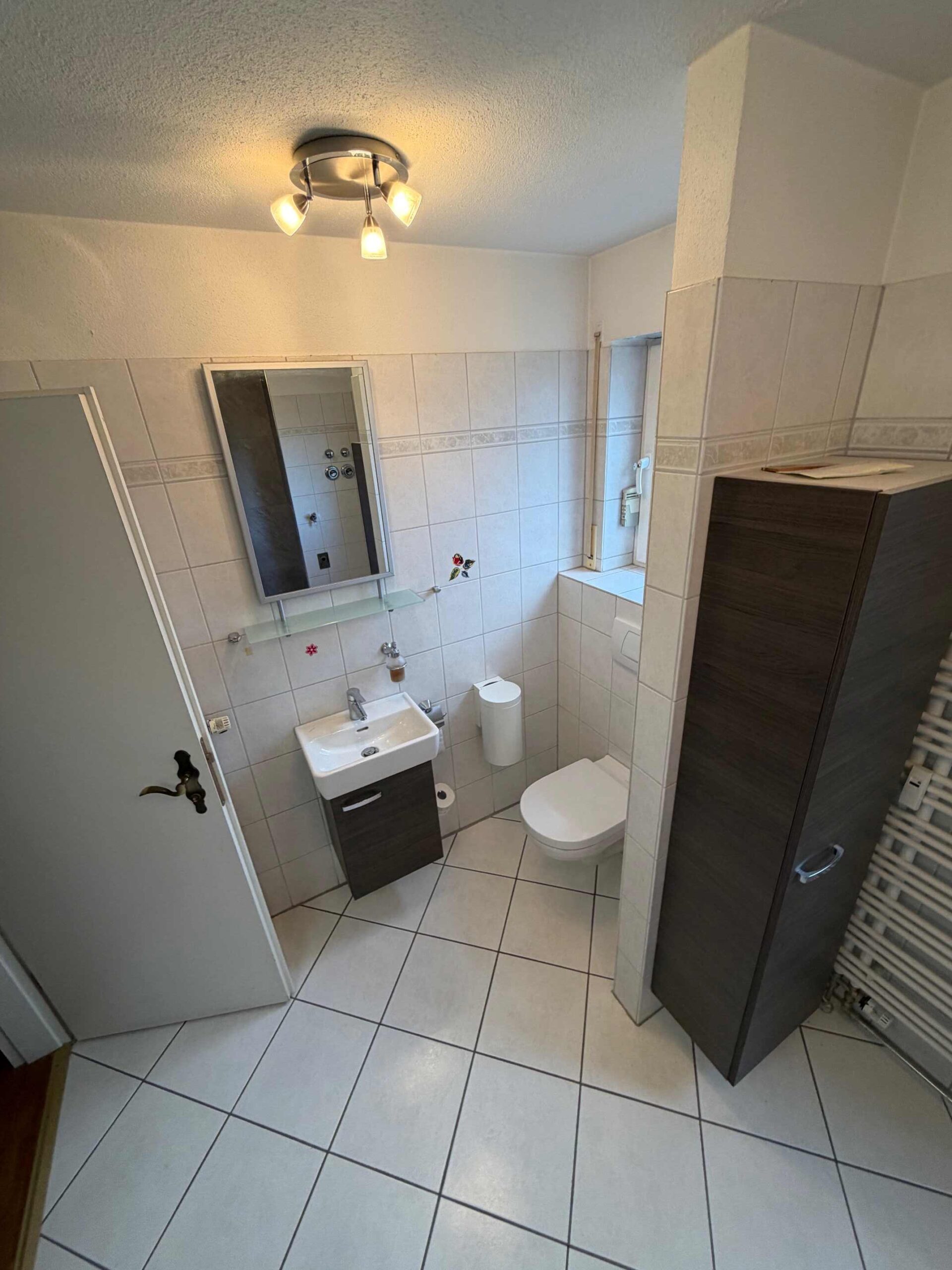 Im Untergeschoss befindet sich ein großer Waschraum, in dem Sie ihre eigene Waschmaschine anschließen können. Ebenso besitzt die Wohnung einen eigenen abgeschlossenen Keller.